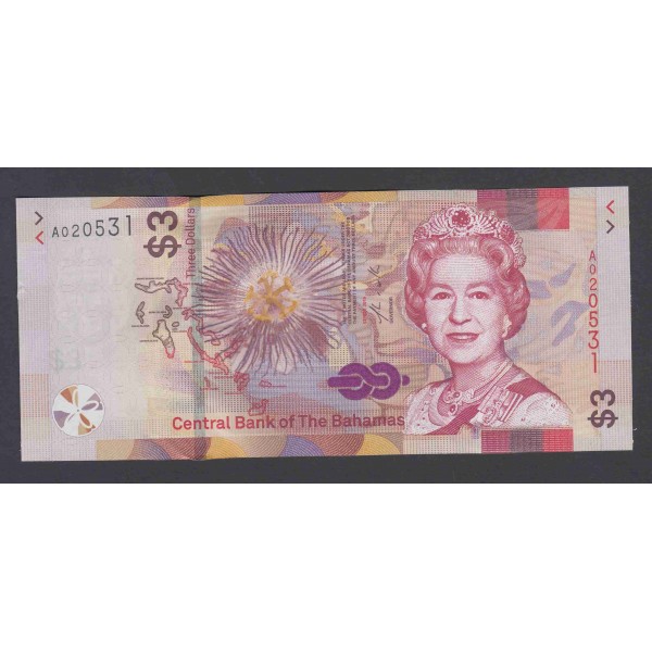 Bahamas Pick. 77A 3 Dollars 2016-21 UNC