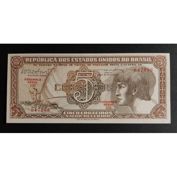 Brazil Pick. 166 5 Cruzeiros 1961-62 UNC