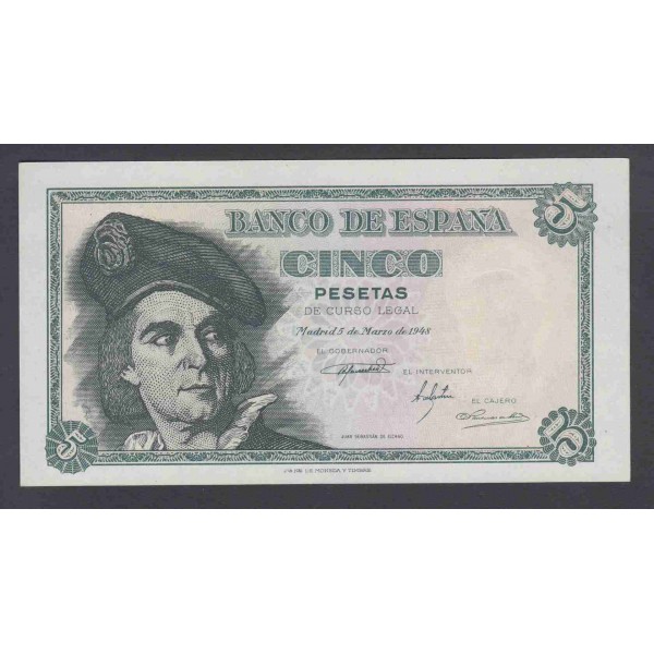 Spain ick.136 5 Pesetas 05-03-1948 AU