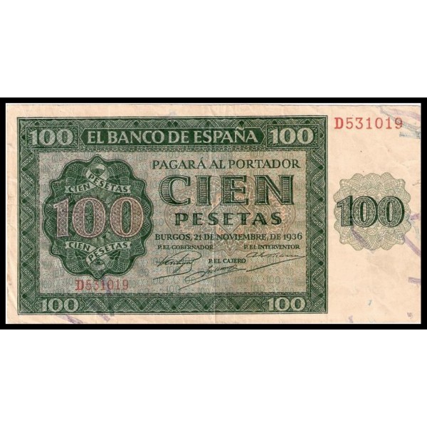 Spain Pick.101 100 Pesetas 21-11-1936 XF