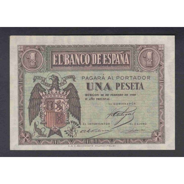 Spain Pick. 107 1 Peseta 28-02-1938 UNC