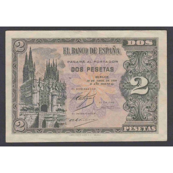 Spain Pick.109 2 Pesetas 30-04-1938 XF