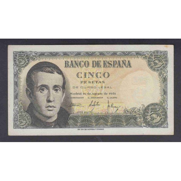 Spain Pick.140 5 Pesetas 16-08-1951 AU