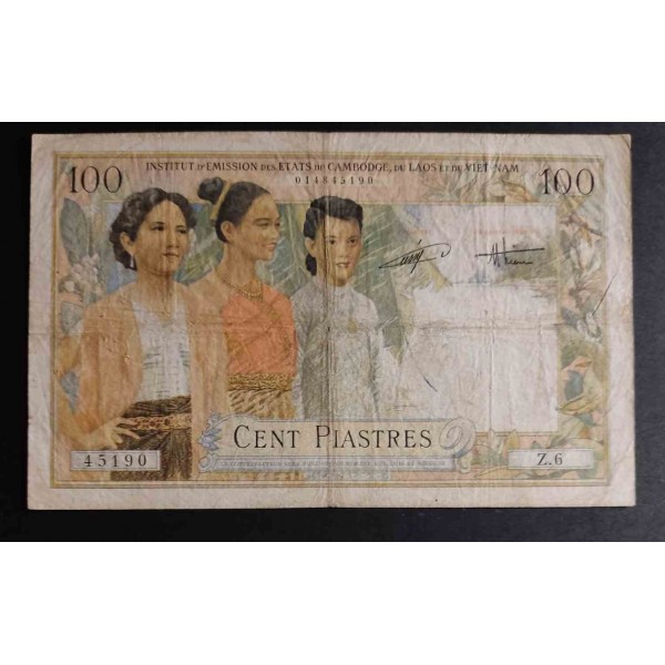 French Indochina Pick. 108 100 Piastres 1954 MBC