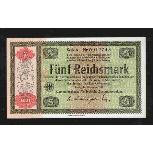 Germany Pick. 207 5 ReichsMark 1934 AU