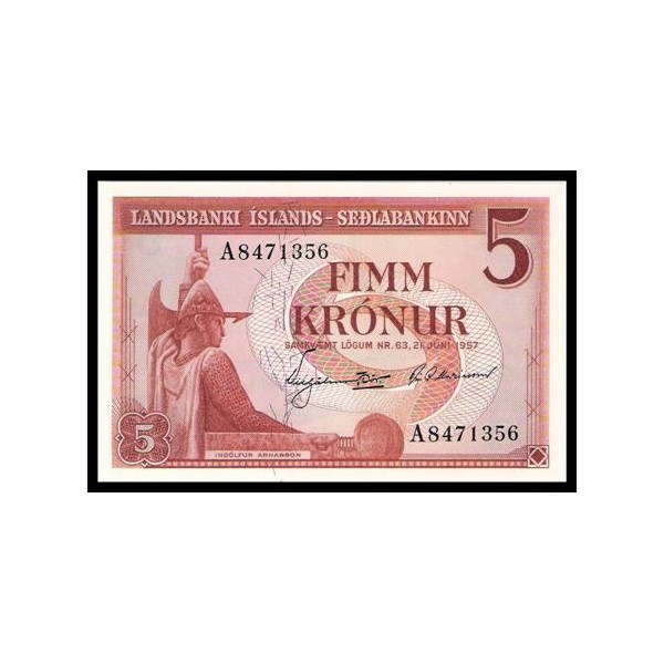 Iceland Pick. 37 5 Kronur 1957 UNC