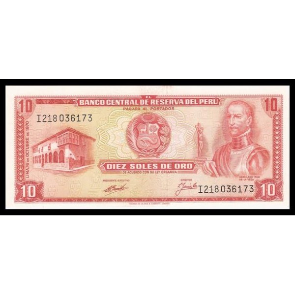 Peru Pick. 100a 10 Soles de Oro 1969 UNC