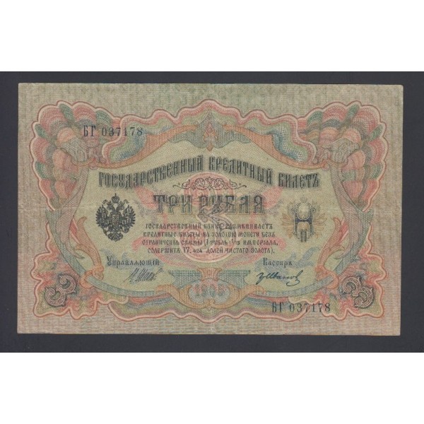 Russia Pick. 9c 3 Rubles 1905-17 VF