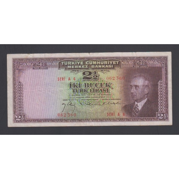 Turkey Pick. 140 2 1/2 Lira 1947 VF