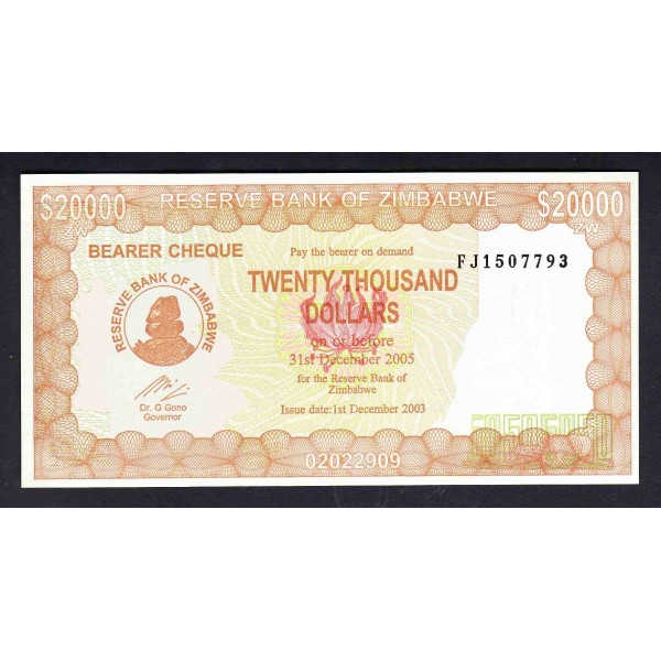 Zimbabwe Pick. 23 10000 Dollars 2003 UNC