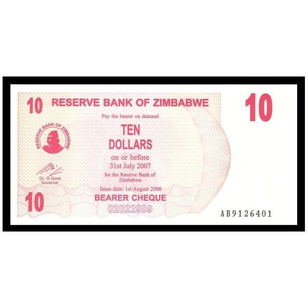 Zimbabwe Pick. 39 10 Dollars 2006 UNC