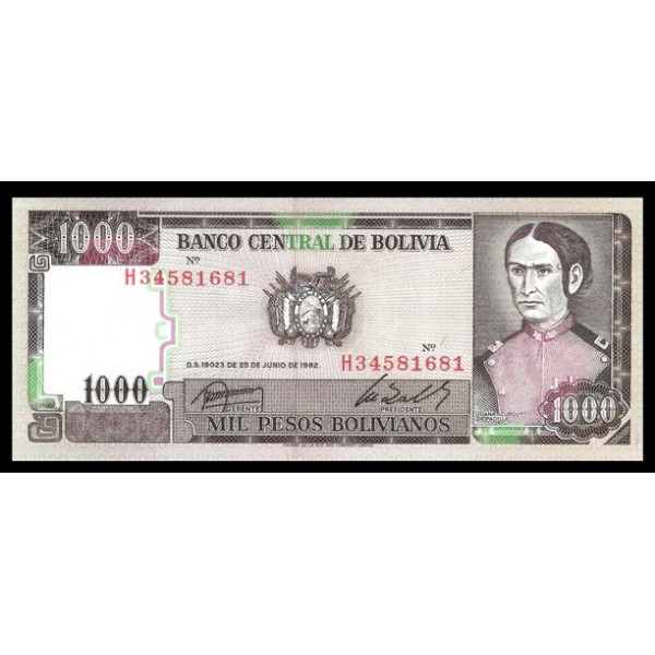 Bolivia Pick. 167 1000 Pesos Bolivianos 1982 EBC