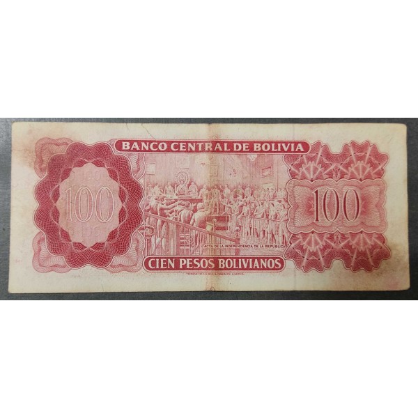Bolivia Pick. 164A 100 Pesos Bolivianos 1962 MBC
