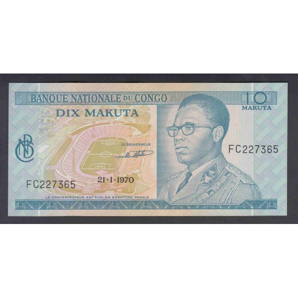 Congo Democratico Pick. 9 10 Makuta 1967-70 SC-