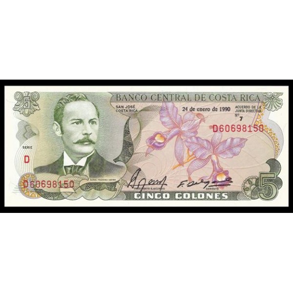 Costa Rica Pick. 236 5 Colones 1968-92 SC