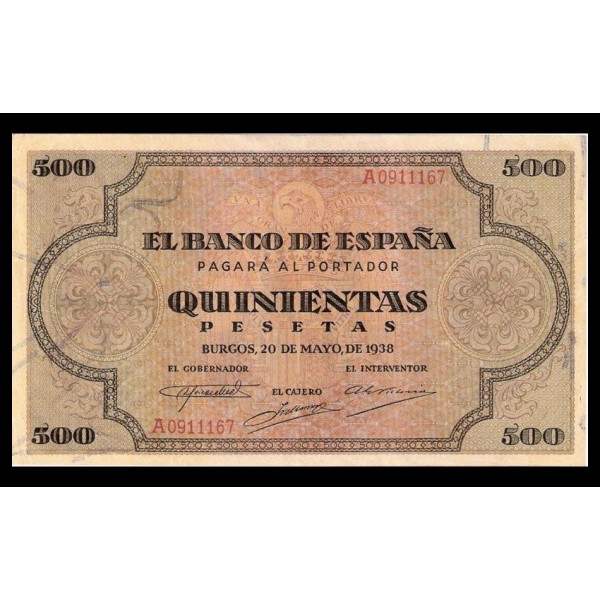 Edifil. D 34 500 Pesetas 20-05-1938 EBC