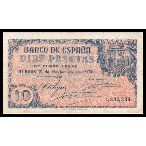 Edifil. D 19 10 Pesetas 21-11-1936 MBC