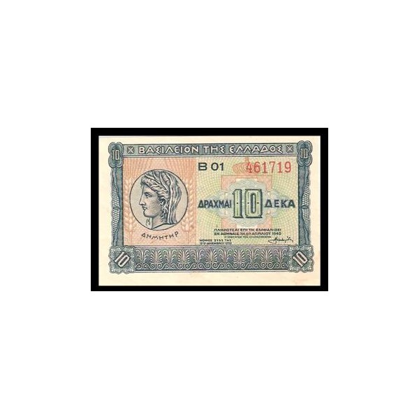 Grecia Pick. 314 10 Drachmai 1940 SC