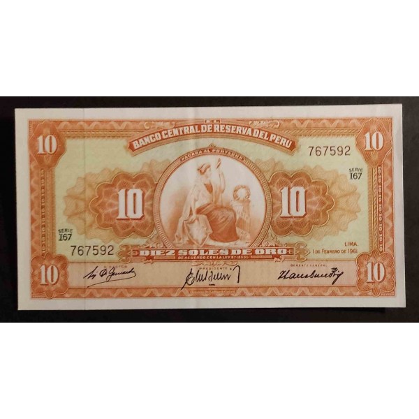 Peru Pick. 82A 10 Soles Oro 1960 EBC