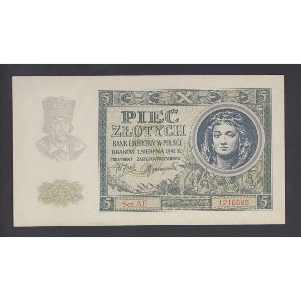 Polonia Pick. 101 5 Zlotych 1941 SC