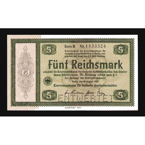 Allemagne Pick. 199s 5 ReichsMark 1933 NEUF