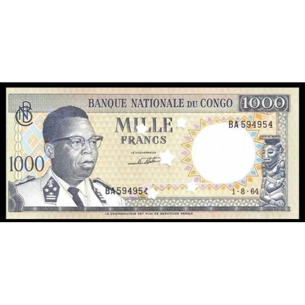 Congo Democratico Pick. 8s 1000 Francs 1961-64 SC-