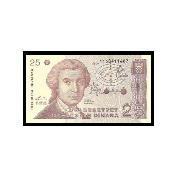Croacia Pick. 19 25 Dinara 1991 SC