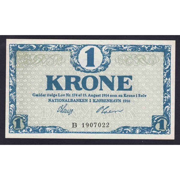 Danemark Pick. 12 1 Krone 1916-21 NEUF-
