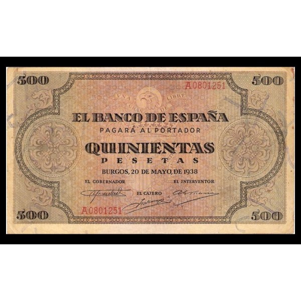 Edifil. D 34 500 pesetas 20-05-1938 MBC