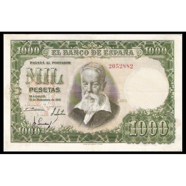 Espagne Pick.143 1000 Pesetas 31-12-1951 SUP