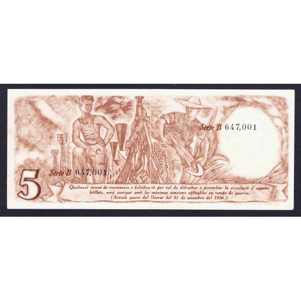 Espagne Pick. S 592 5 Pesetas 25-09-1936 SUP