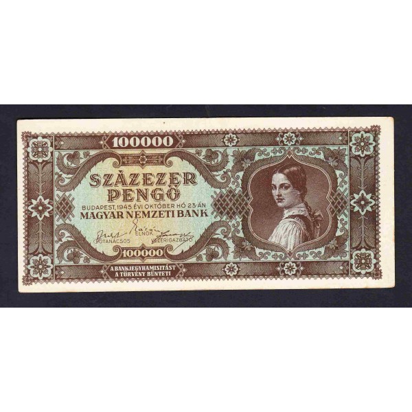 Hongrie Pick. 121 100000 Pengo 1945 TB