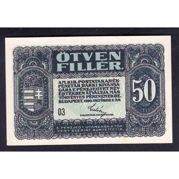 Hongrie Pick. 44 50 Filler 1920 NEUF-