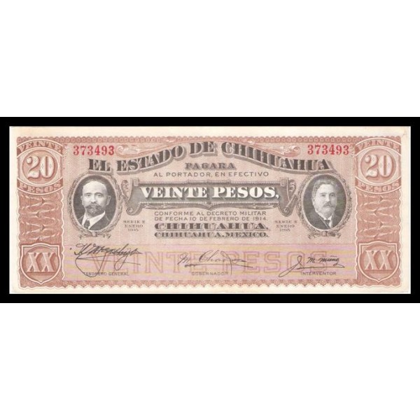 Mexico Pick. S 538 20 Pesos 10-02-1914 NEUF-