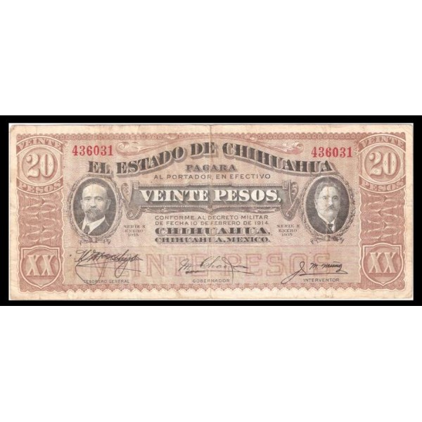 Mexico Pick. S 537 20 Pesos 10-02-1914 TB