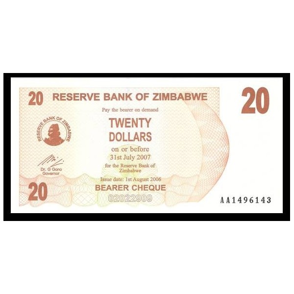 Zimbabwe Pick. 40 20 Dollars 2006 NEUF